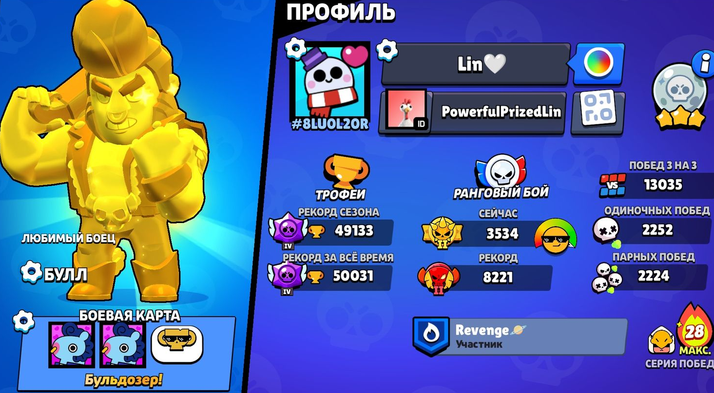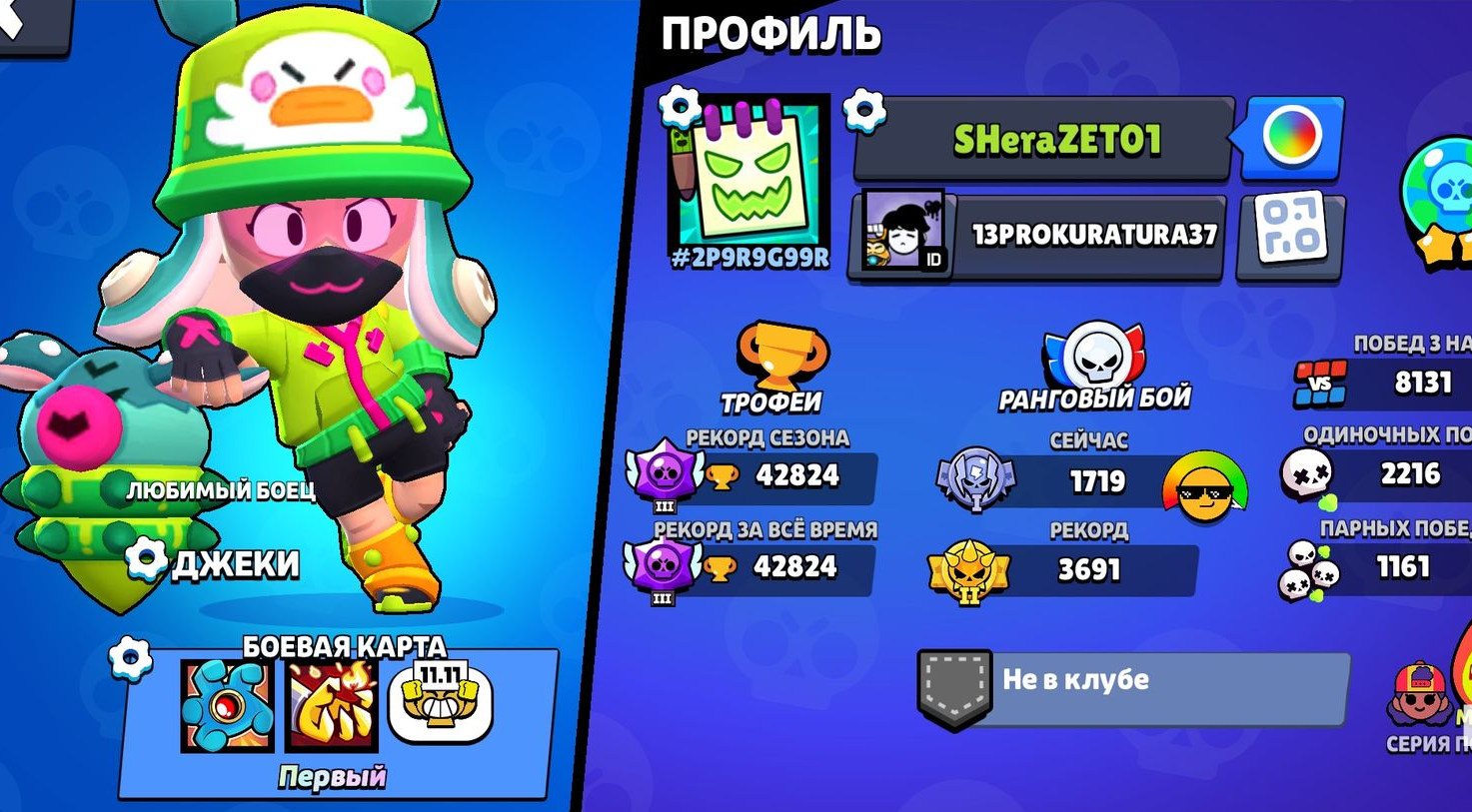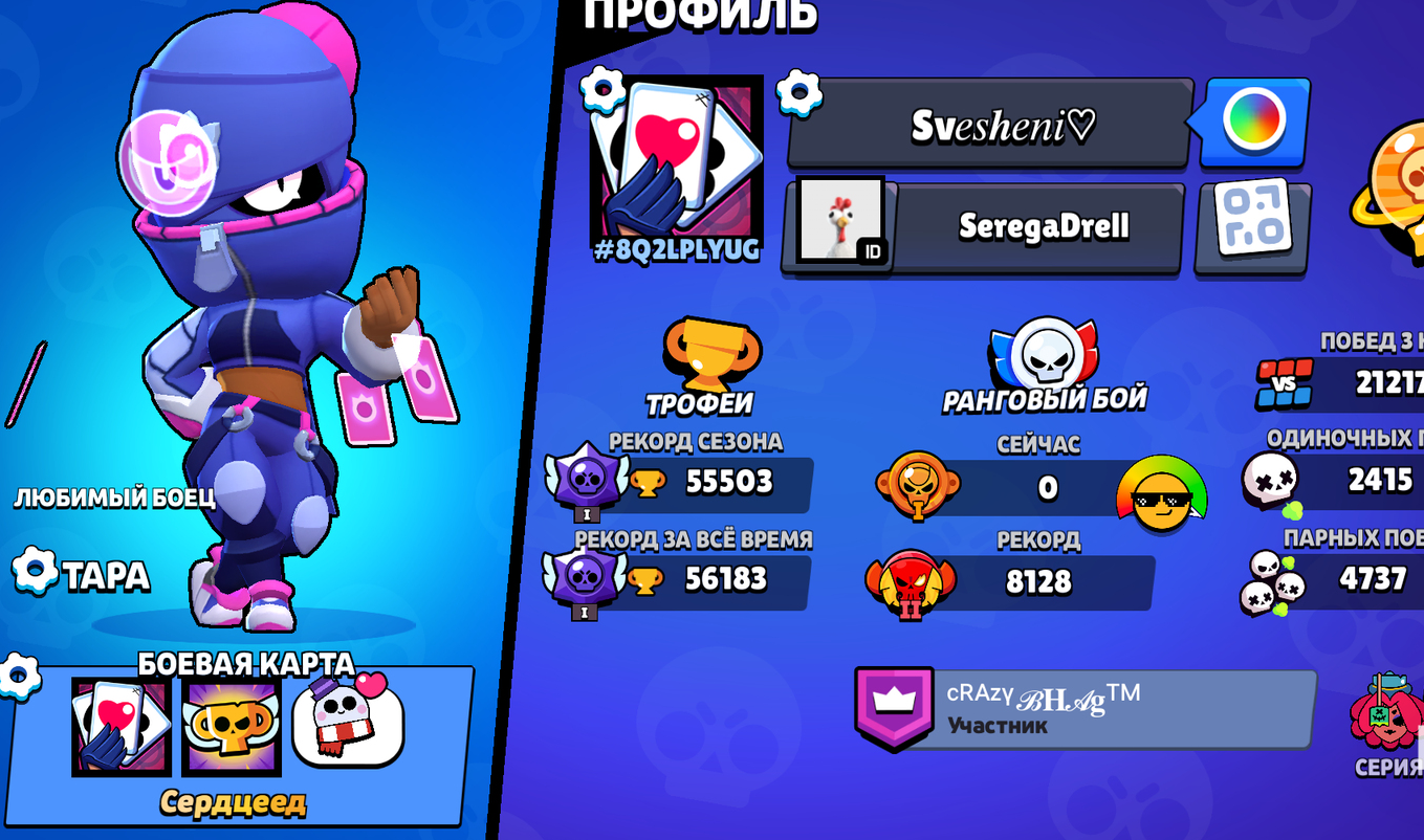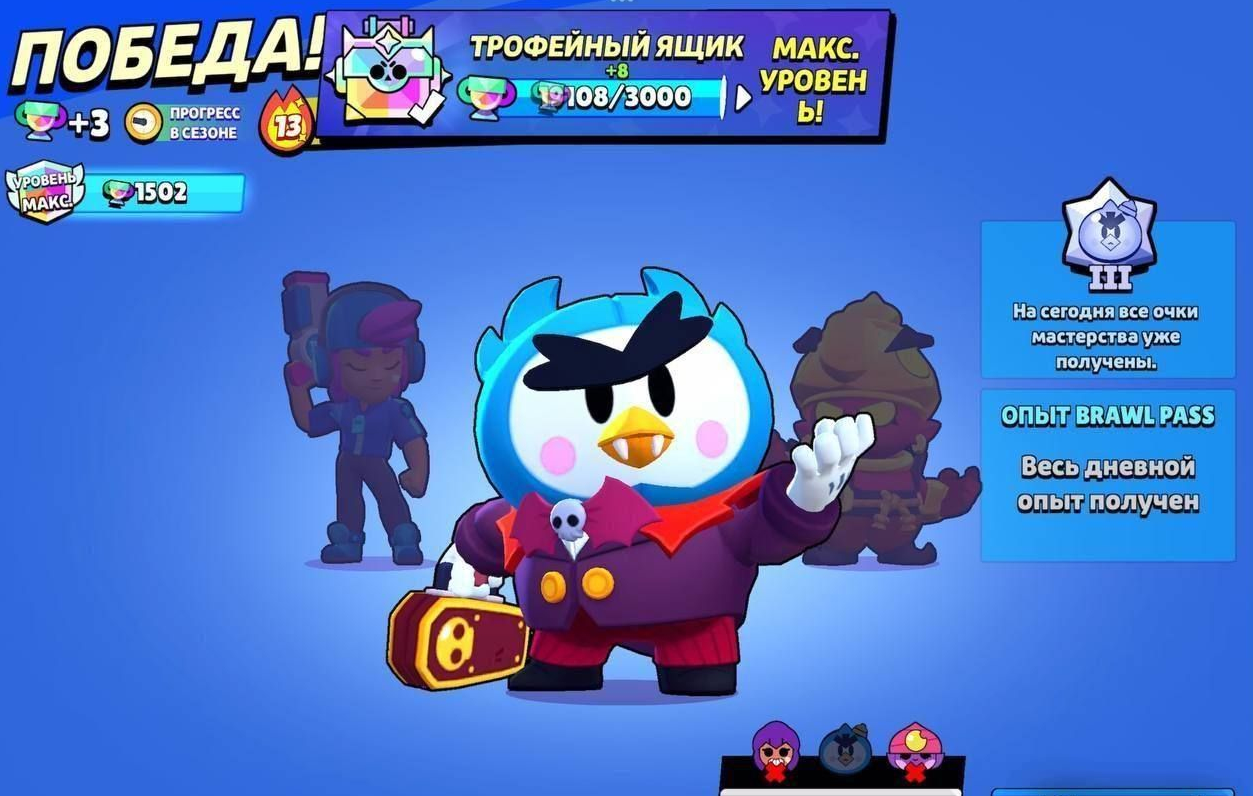 Бойцы 86 Трофеи 55503 Легендарных персонажей 12 Бесплатная смена ника Нет Высший ранг Легендарная лига На аккаунте не было пассажиров