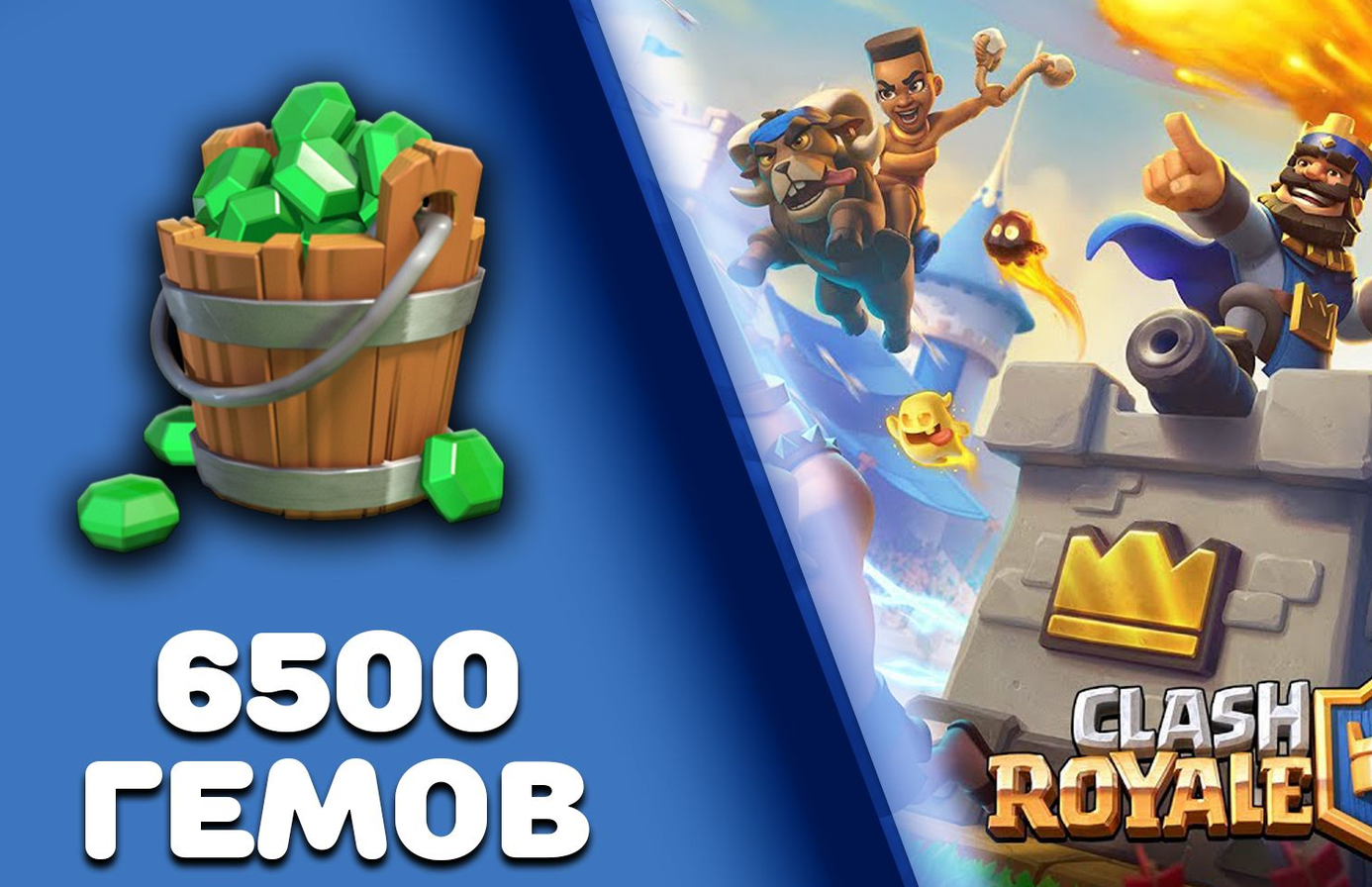 6500 гемов 👋Приветствую! В моем магазине Вы сможете официально и легально купить гемы, акции, спецпредложения, скины и прочее в Clash Royale. 🙂 Я сразу отвечаю и заказ за 2-10 минут выполняется 😉